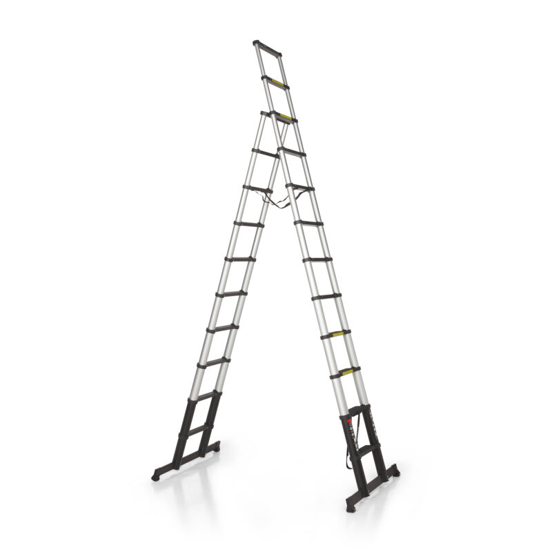 L’échelle télescopique pliante ALDORR Professional est une échelle robuste en aluminium anodisé avec un revêtement protecteur noir. L’échelle se compose de 2 parties et peut être utilisée comme échelle autoportante en position A. Grâce à sa large barre de stabilisation de 90 cm, vous êtes toujours stable et en sécurité – même lors d’une utilisation intensive.